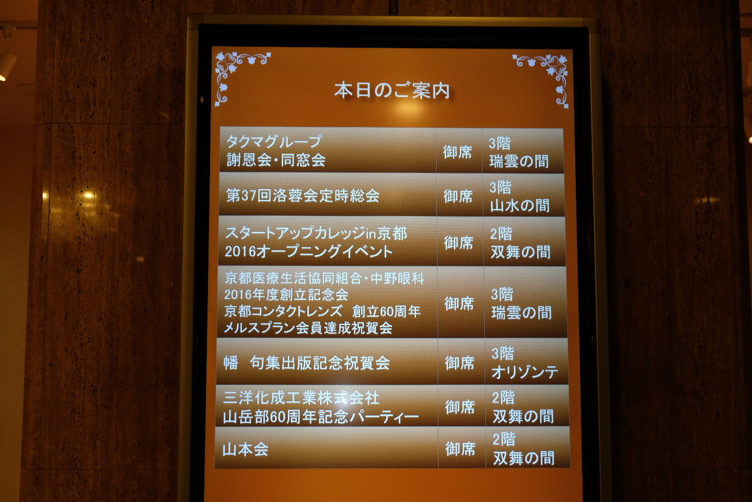 平成28年10月15日(土) 於:からすま京都ホテル 午後6時開宴